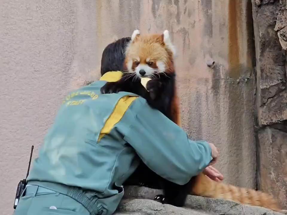 래서판다 꼬리확인하는 사육사