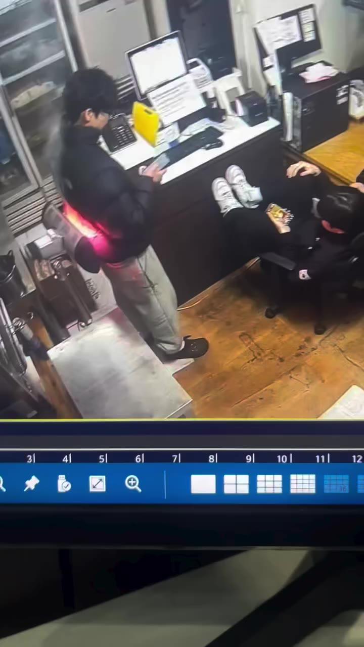손님이 음료수 흘릴 거 같아서 쳐다보는 직원