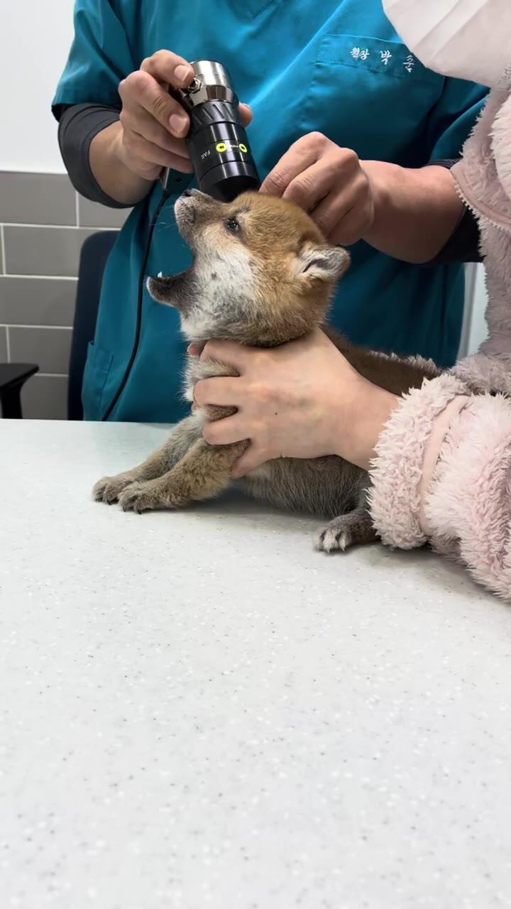 강아지 귀 진드기 있나 봐주는 수의사 선생님